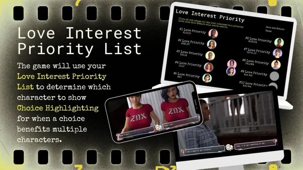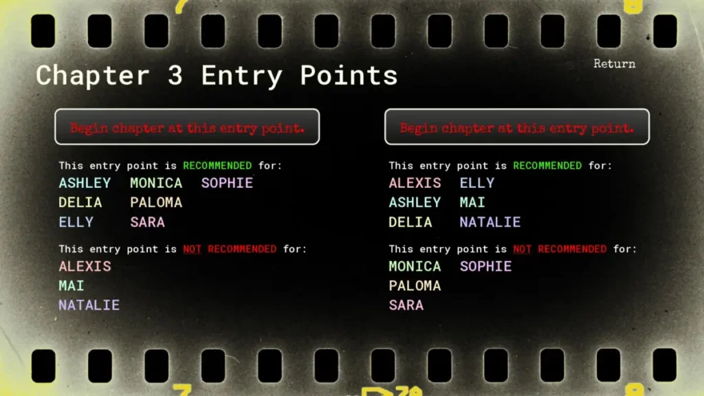 For the Unharmed Reel achievement, you aren’t aiming for a date at all. You need to go back to the very first major save point (Save 1, at the shooting range). From there, choose to “Stay home.” When the phone interface appears, you must open the text message arrow on the side, and then join the group invites that appear there. This path bypasses the individual dates entirely and leads to a different, secret scene, unlocking the achievement. It’s a brilliant reward for players who experiment with the UI itself!